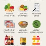 Comparing the sodium content on different brands and products, and choosing packaged foods labeled “low sodium,” “reduced sodium,” or “no salt added” when available, can also help control your overall sodium intake.
