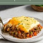 To Reheat: From the fridge, transfer the whole shepherd’s pie, covered with aluminum foil, to the oven at 350°F for 20-30 minutes until heated through and bubbling. Individual portions can be reheated in an oven-safe casserole dish at 350°F for 10-15 minutes or in a microwave-safe dish in the microwave for 2-3 minutes. If frozen, allow the shepherd’s pie to thaw completely and then reheat at 350°F for 20-30 minutes or until heated through. To reheat from frozen, cover the baking dish with foil and warm it in the oven at 350°F for 40-50 minutes until heated through.