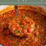 Filled with tender beef, cooked rice, and a rich tomato sauce, this stuffed pepper soup is everything you love about stuffed peppers made in a single pot.