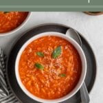 Enjoy this creamy tomato orzo soup with crusty bread or a grilled cheese for a simple yet delicious meal.