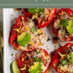 - Vegetarian – They can easily be turned into vegan stuffed peppers by omitting the shredded cheese.